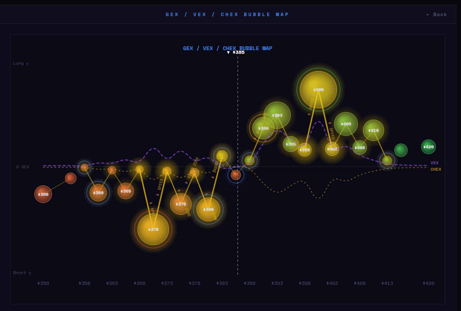 CHEX, VEX, GEX bubble map - $TSLA ( ▼ 1.75% )