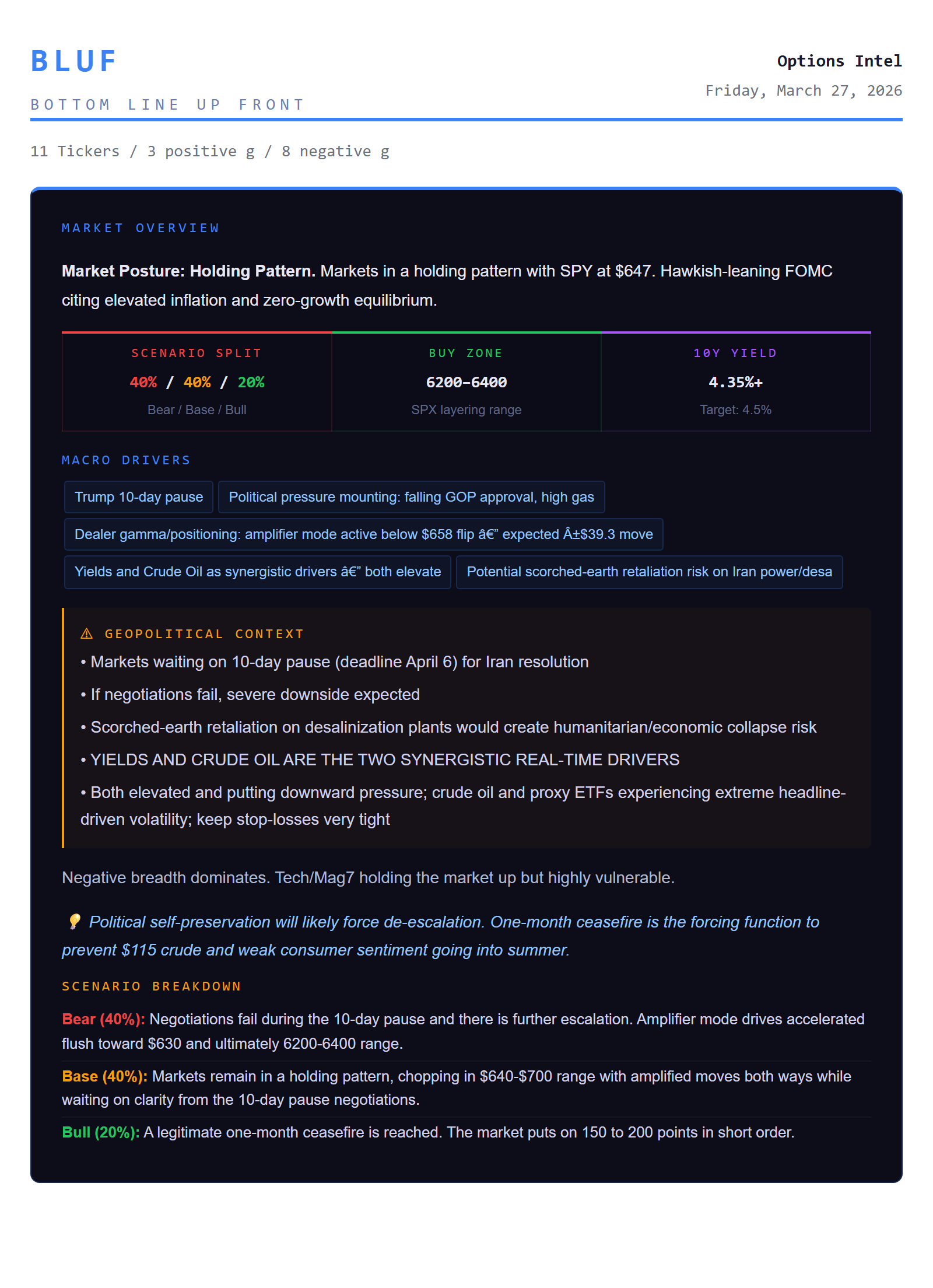 Bottom line: Market is in "hold and watch" mode. It's volatile because of geopolitics, but nothing is decided yet. The next big move will probably come from weekend or early-April Iran news.